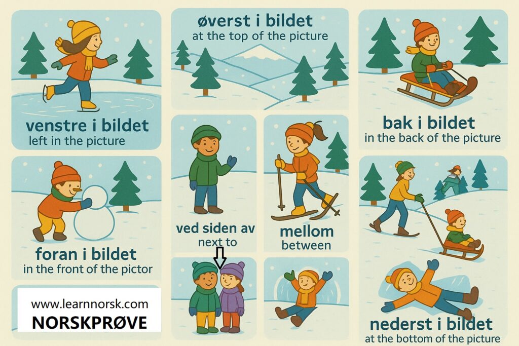 Viktige ord for å beskrive bildet på norskprøven Important word to describe the picture on the Norwegian test