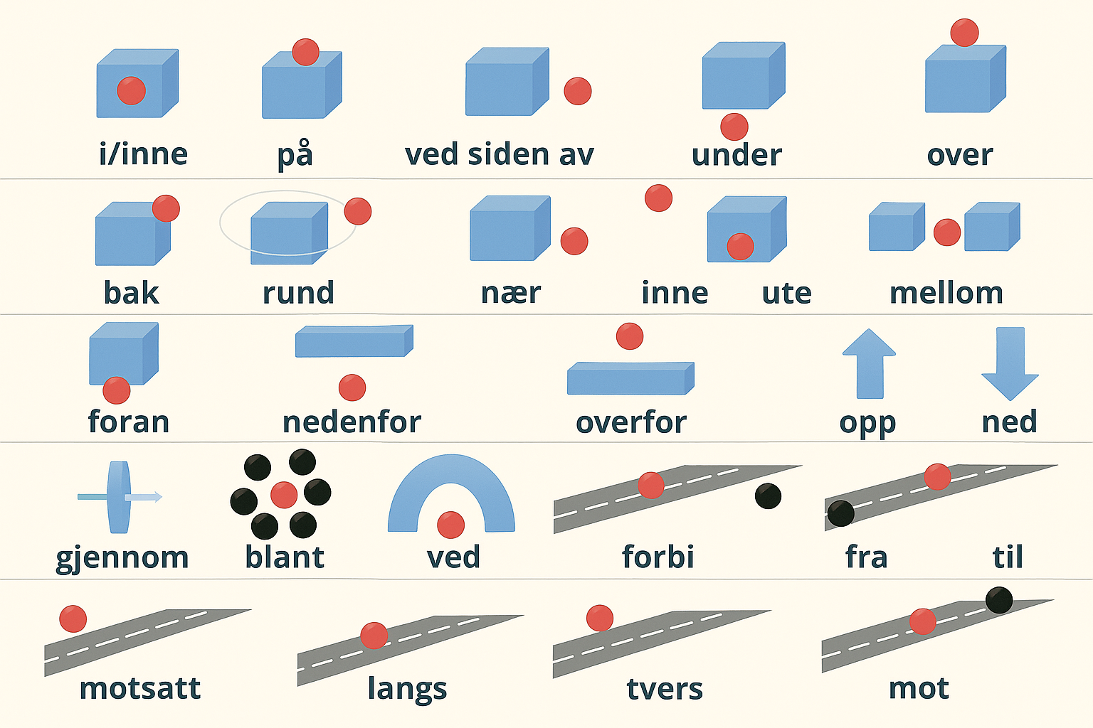 Stedspreposisjoner i norsk språk:Prepositions of place in Norwegian language: